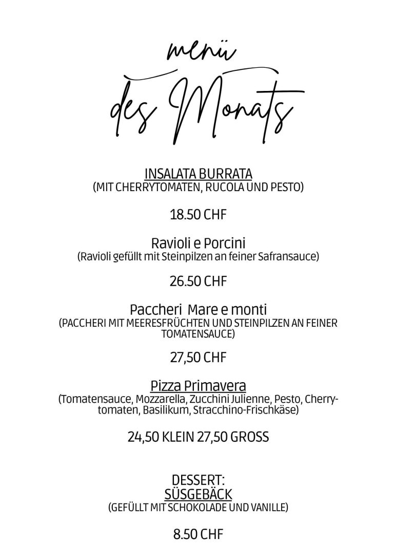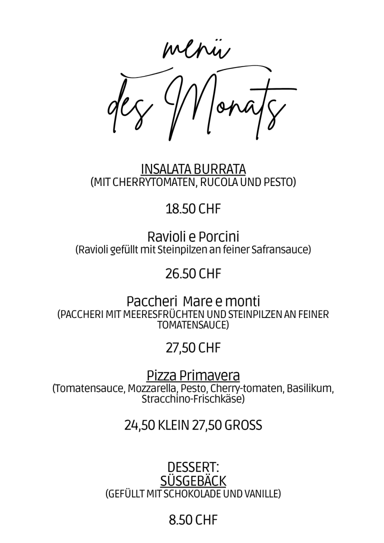 Ob Mittagstisch oder familiärer Abend – die knusprige Pizza, die frische Pasta oder das berühmte Risotto sind weit aus sehr berühmt!